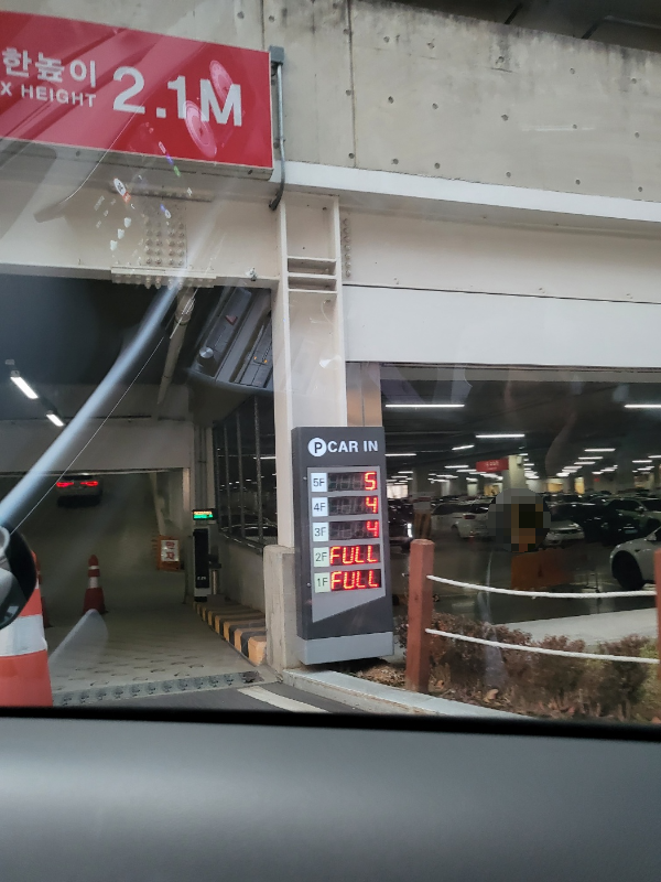 만차인 주차장 2층에 차대고 기다림.