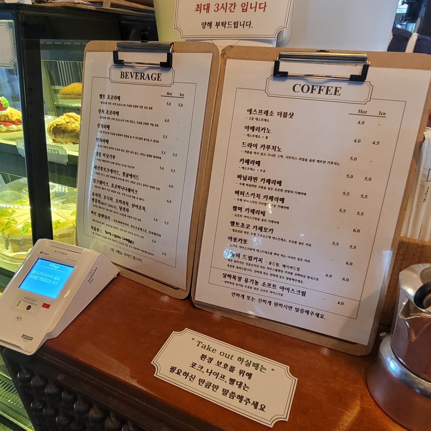 메뉴는 음료와 빵, 케익 종류가 있었는데