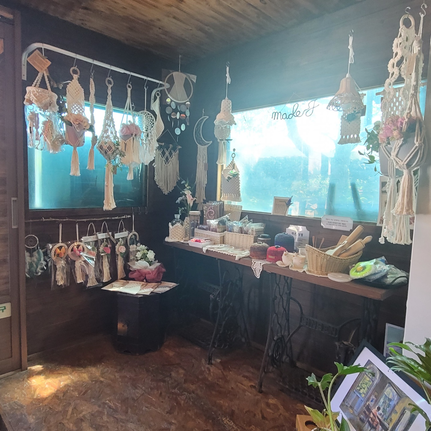 양쪽에 작은 소품 상점과 추억의 간식 코너가 있습니다.