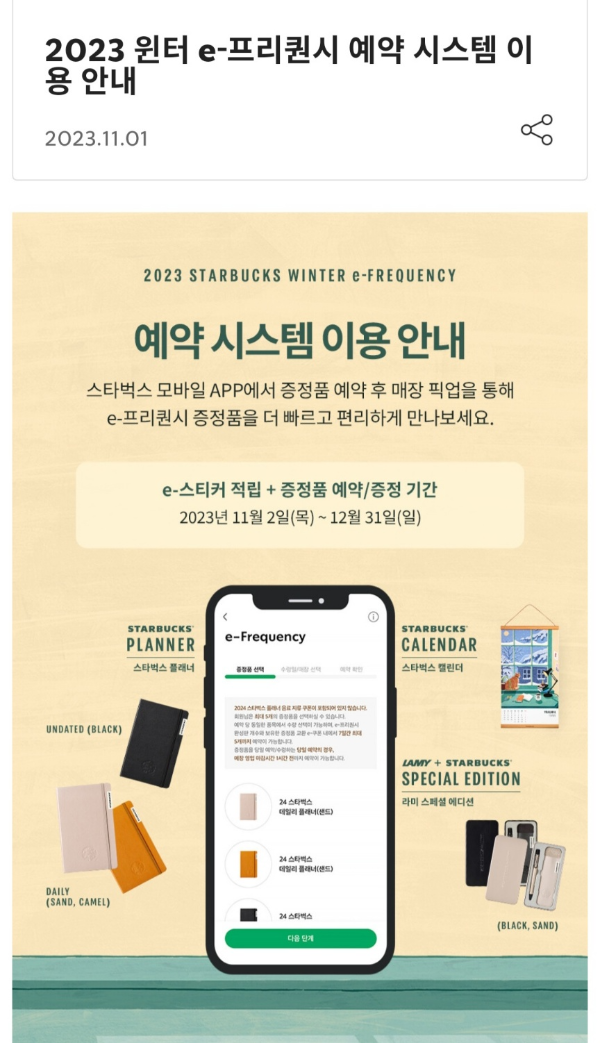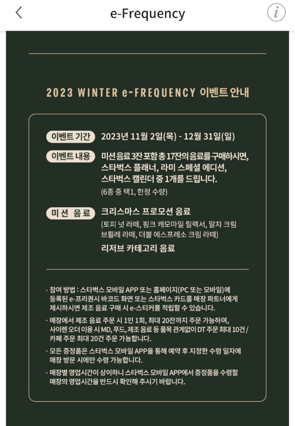 2023 스타벅스 :) 윈터 e-프리퀀시
