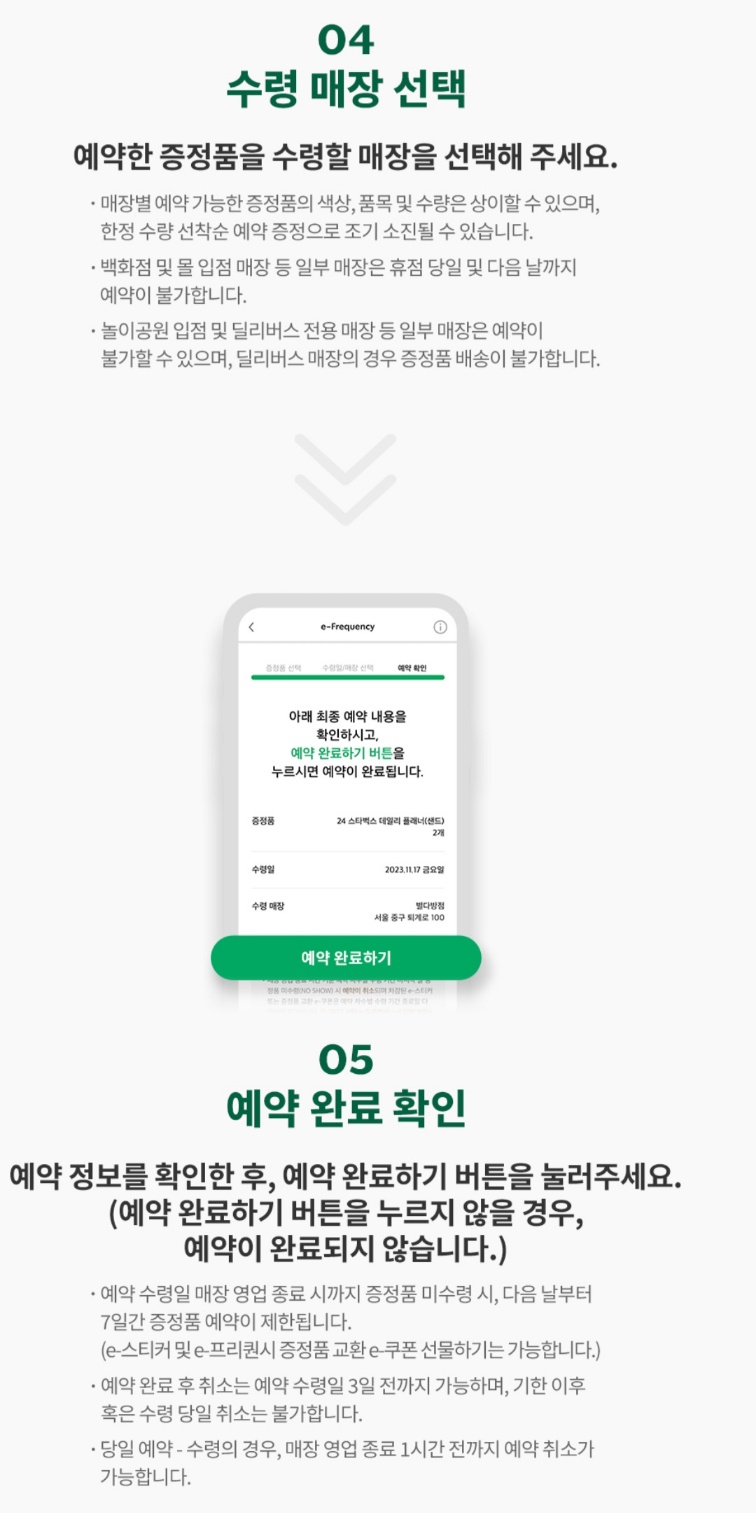 수령일에 매장방문후 예약증(바코드)과 교환하면 진짜 끝