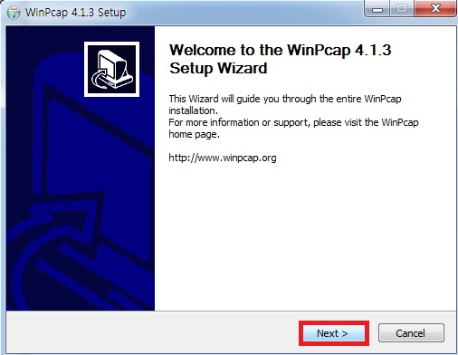 ⑥ WinPcap을 그림과 같은 절차대로 설치합니다.