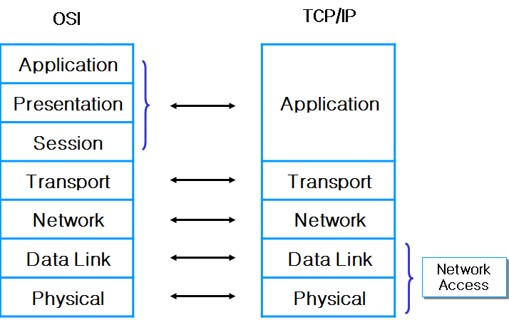 TCP/IP는 1983년 제정된 OSI 7 Layer Model 보다 훨씬 이전인 1960년대 말 미 국방성에서 개발한 ARPANET(Advanced