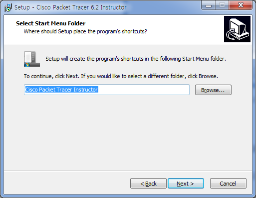 패킷트레이서가 설치될 폴더를 확인한 후 "Next >" 버튼을 클릭한다.