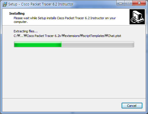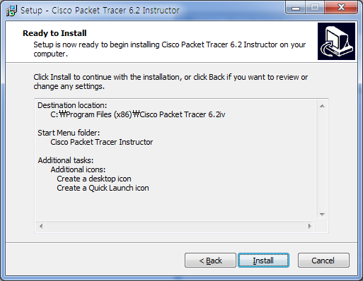단, 패킷트레이서 소프트웨어가 설치될 하드디스크에 여유 공간은 최소 280MB 이상이어야 합니다.