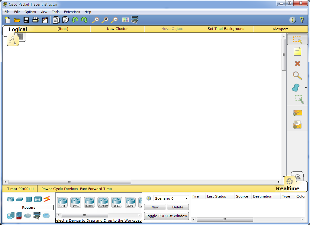 8. 설치 완료 후 바탕화면에 Cisco Packet Tracer 아이콘을 실행하면 위와 같이 실행됩니다.